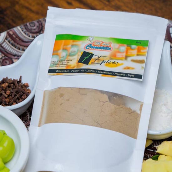 Piment, 7 épices, Gingembre, Poivre, Ail, Laurier, crevettes etc.