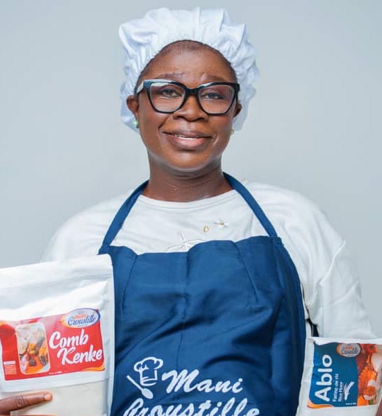 Mani Croustille transforme les produits locaux: céréales et épices. Nos produits sont entre autres : du Aklui nature (mil mais sorgho), Aklui moringa (mil maïs sorgho), du Mawè sorgho et maïs, du Mil torrefié, du Agbeli, FECHOUADA, 7 épices naturelles, 4 épices naturelles, Piment de cuisine et de table, Gingembre et poivre, Ail et Laurier, Crevette fumée.